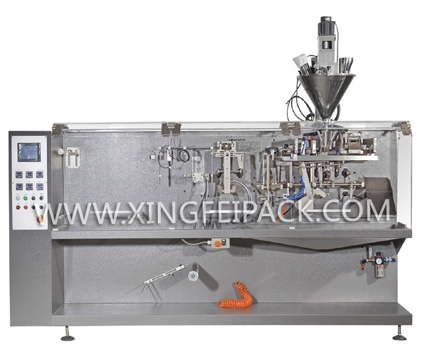 全自動(dòng)水平式包裝機(jī)是一款水平式全自動(dòng)卷膜成型袋包裝機(jī),是集制袋、計(jì)量、灌裝、封口于一體的全新自動(dòng)包裝機(jī)。以熱封性復(fù)合膜材料為外包裝,配置各種不同的灌裝頭,可對(duì)粉狀、顆粒、液體、粘稠體等不同的物料進(jìn)行三邊封或四邊封包裝。