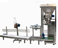 該半自動包裝機能自動完成計量、夾袋、充填、封口、縫包、傳